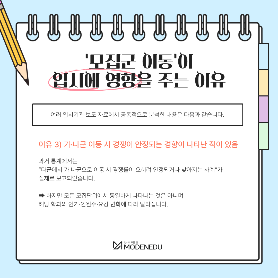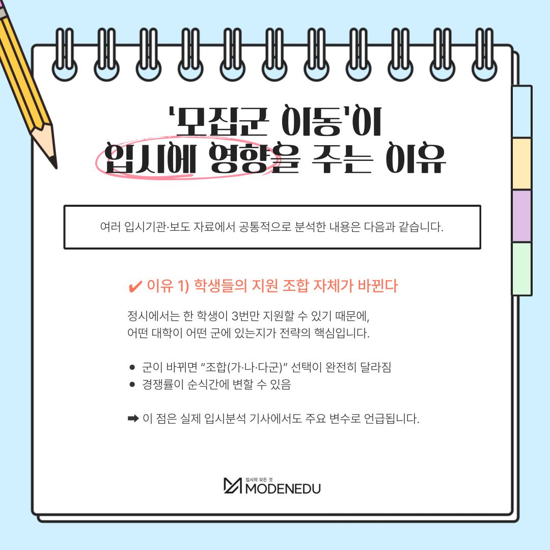 오늘은 이 ‘모집군 이동’이 실제로 어떤 영향을 미치는지