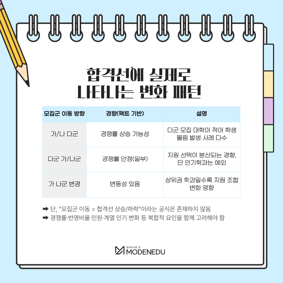 ➡ 단, “모집군 이동 = 합격선 상승/하락”이라는 공식은 존재하지 않음