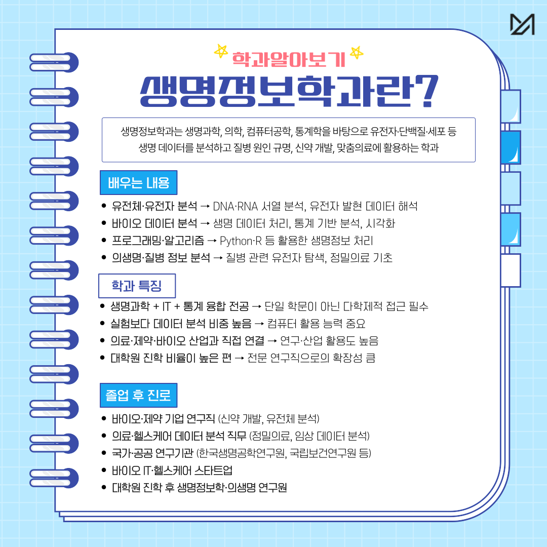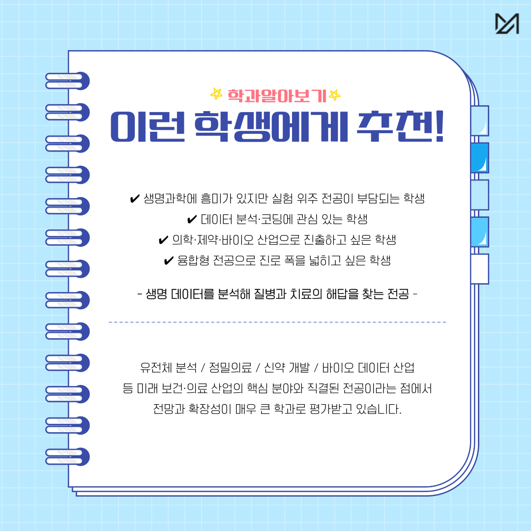 “생명 데이터를 분석해 질병과 치료의 해답을 찾는 전공”입니다.