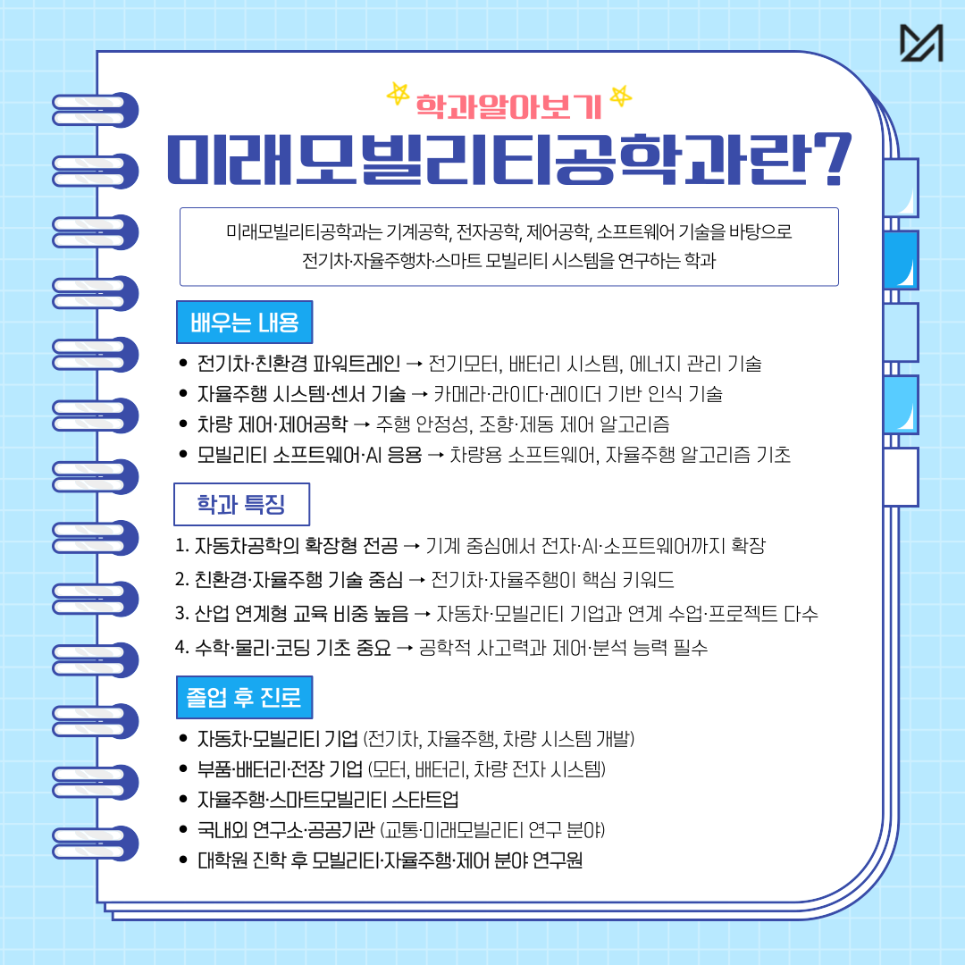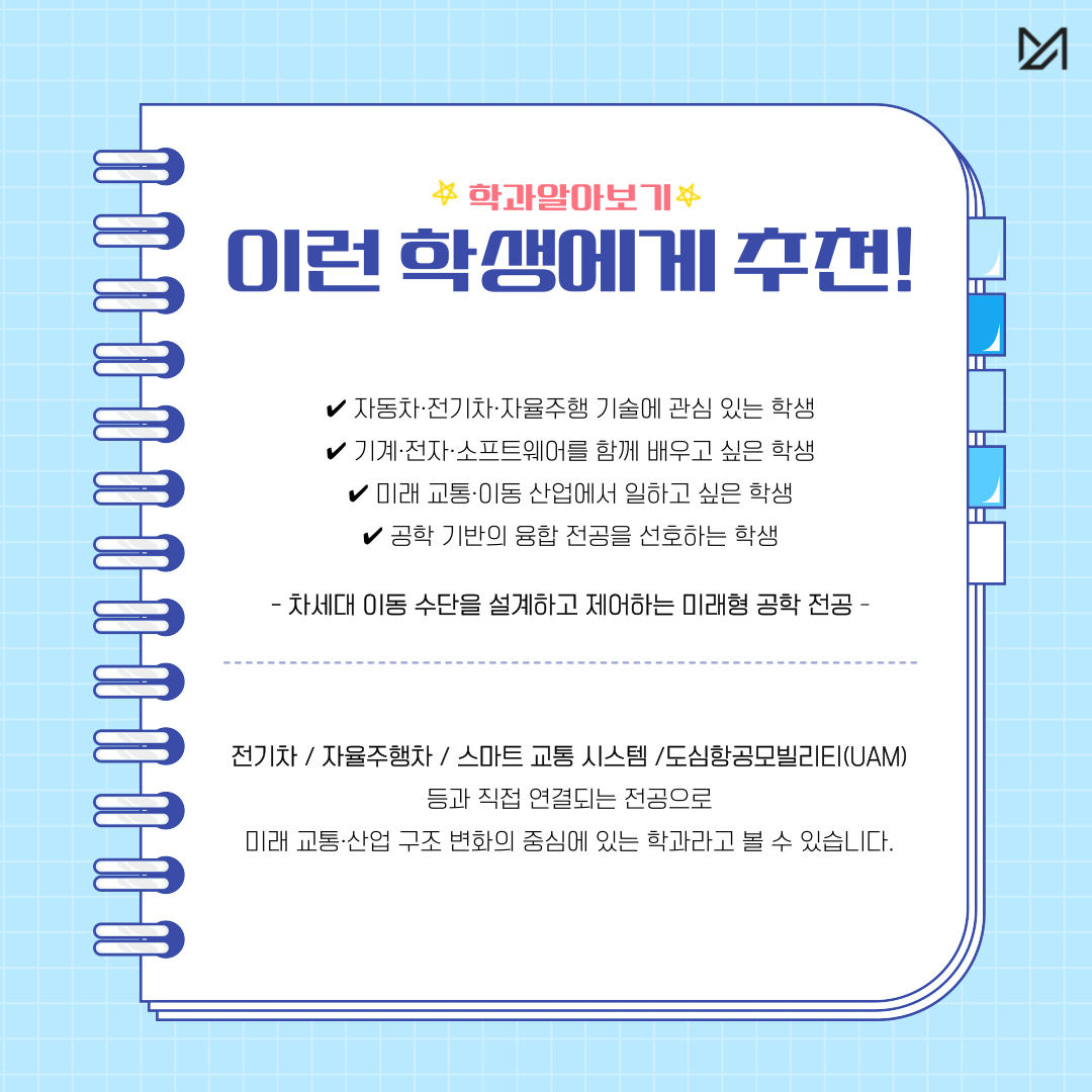 👉 차세대 이동 수단을 설계하고 제어하는 종합 공학 전공입니다.