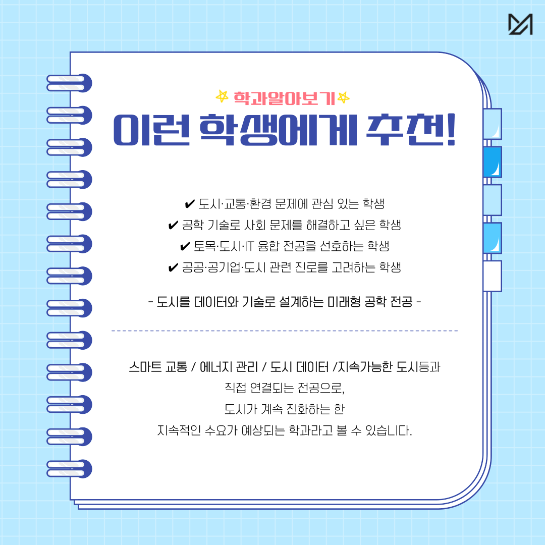 “도시를 데이터와 기술로 설계하는 미래형 공학 전공”입니다.