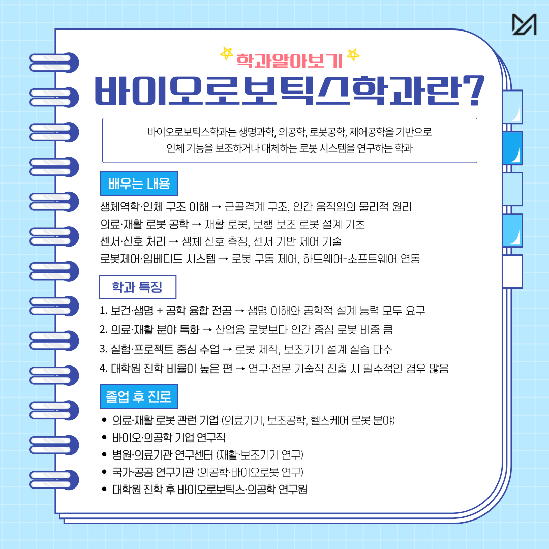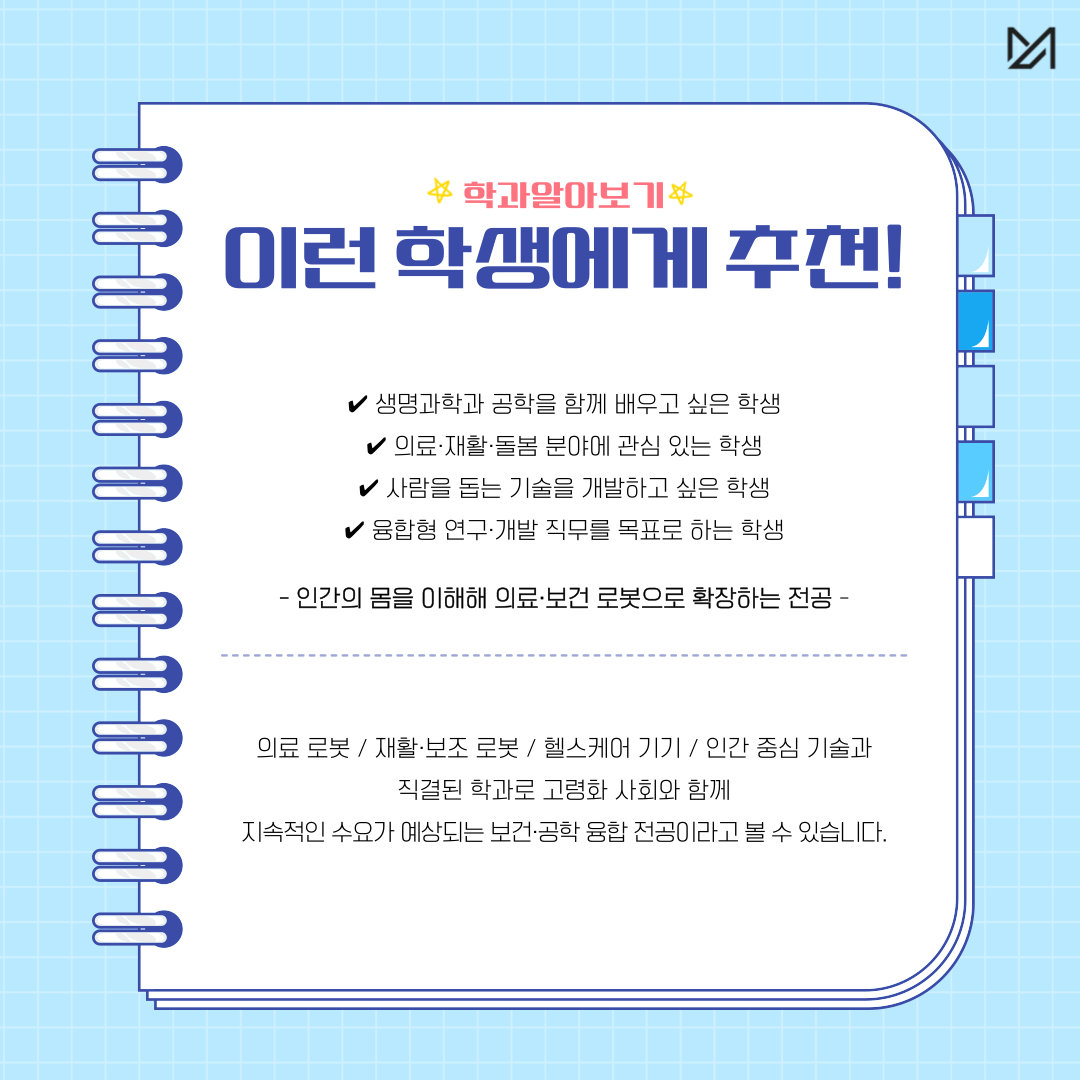 “인간의 몸을 이해해 의료·보건 로봇으로 확장하는 전공”입니다.