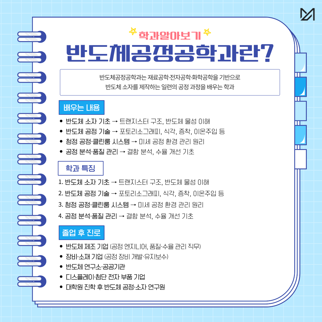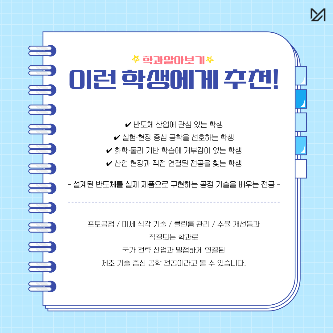 “설계된 반도체를 실제 제품으로 구현하는 공정 기술을 배우는 전공”