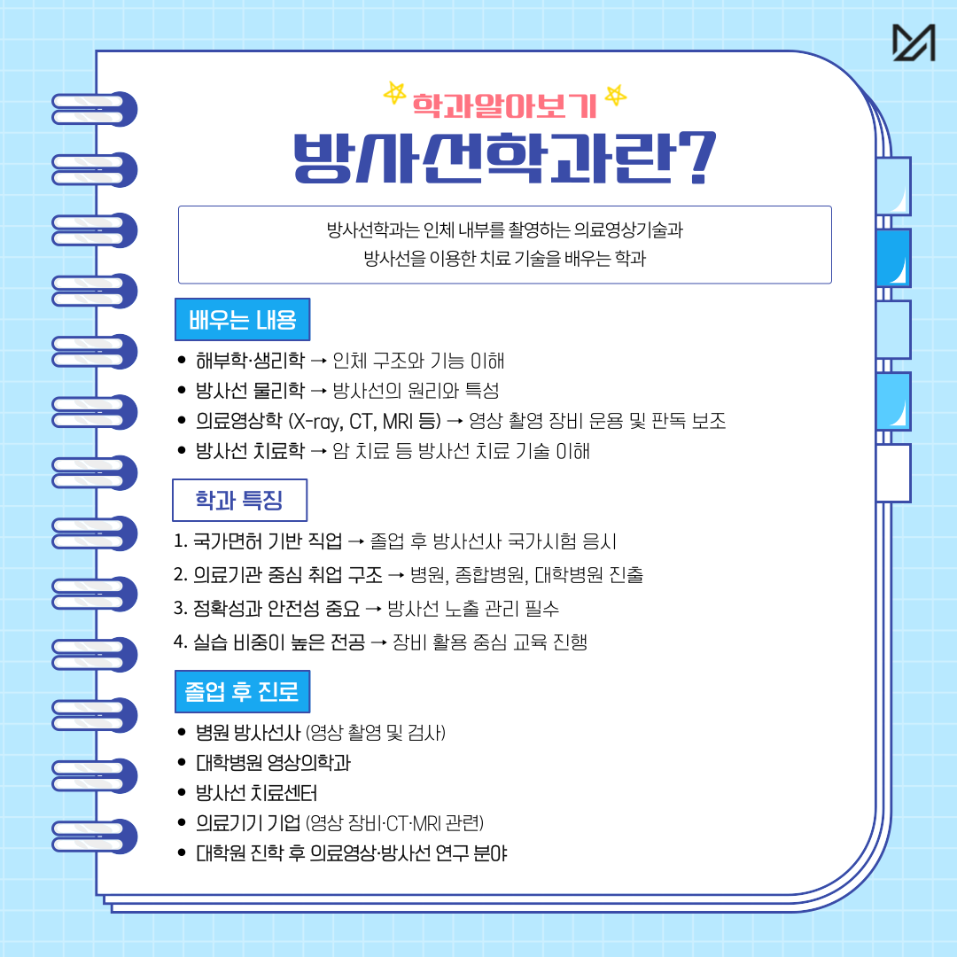 - 방사선 치료학 → 암 치료 등 방사선 치료 기술 이해