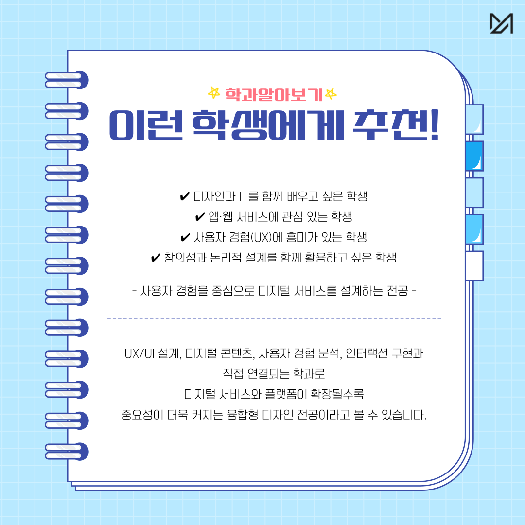 “사용자 경험을 중심으로 디지털 서비스를 설계하는 전공”입니다.