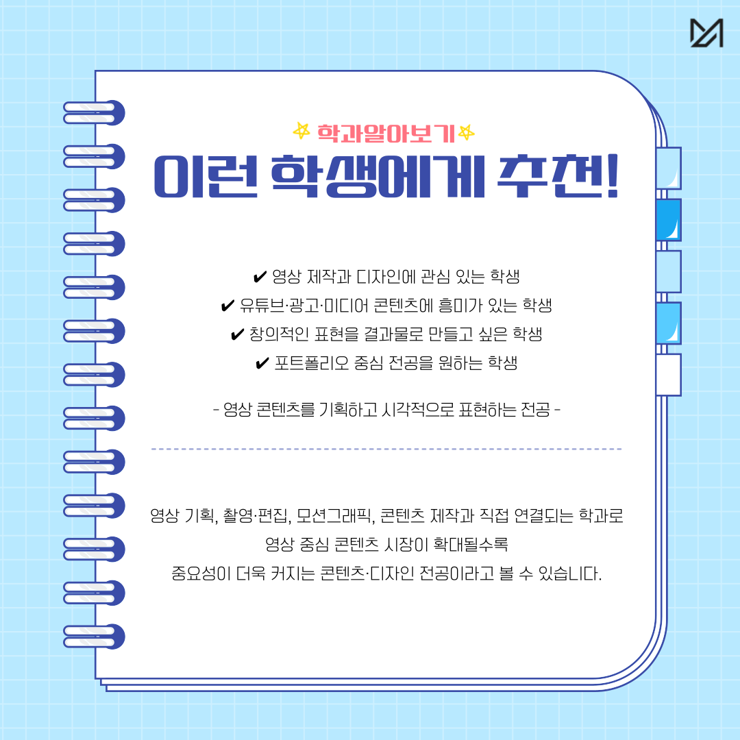 영상 기획, 촬영·편집, 모션그래픽, 콘텐츠 제작과 직접 연결되는 학과로