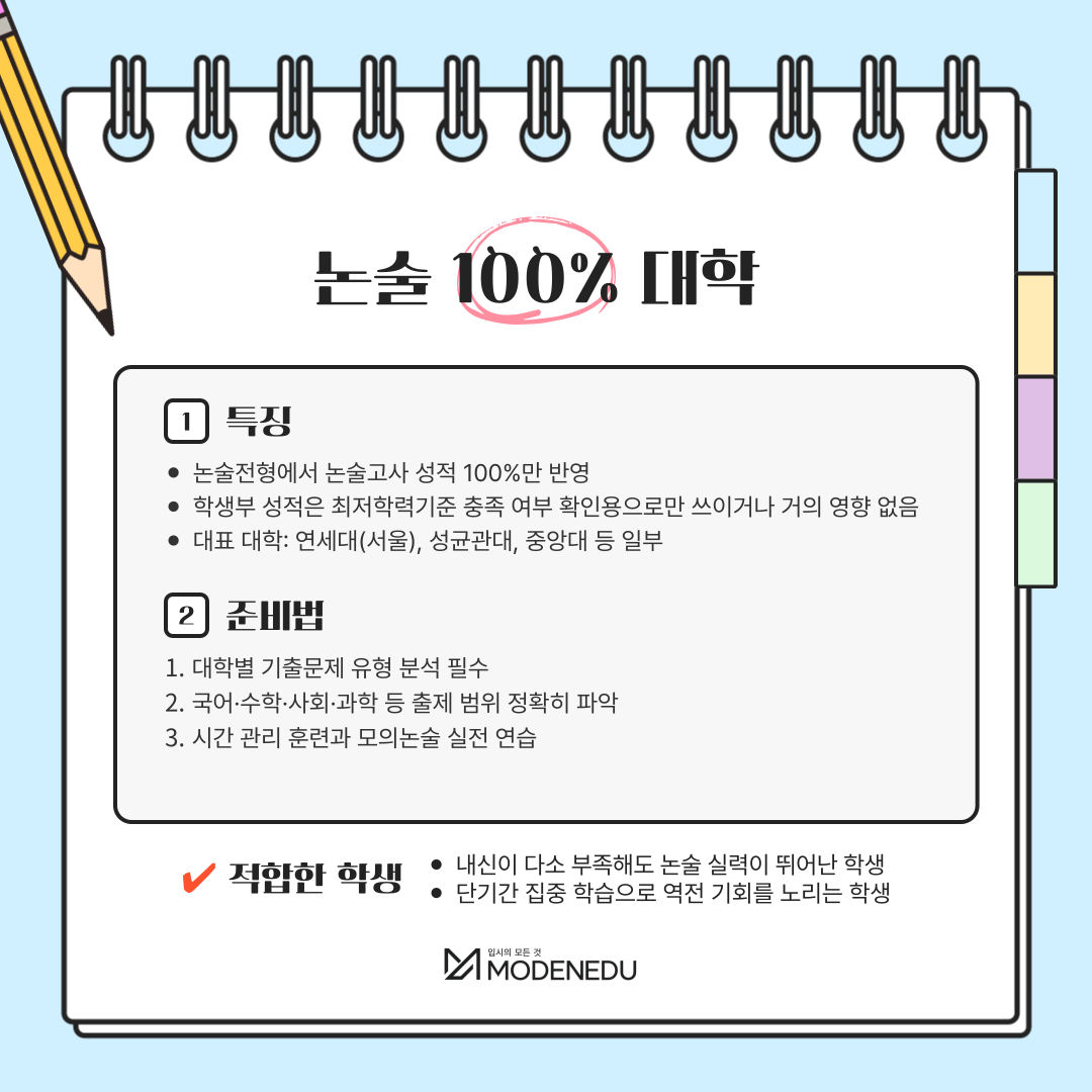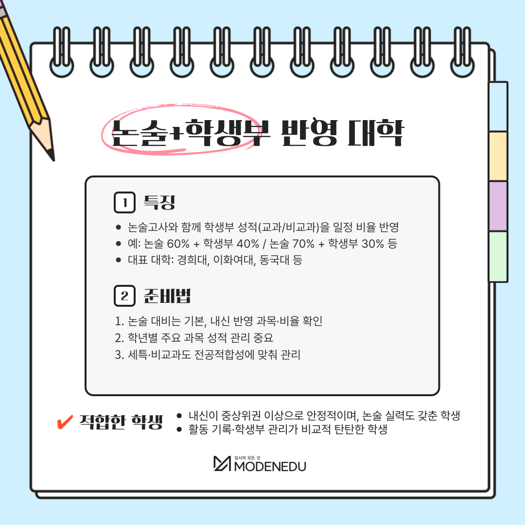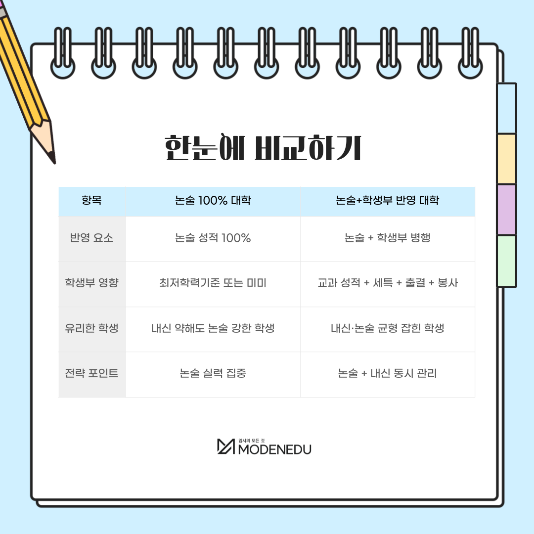 👉 자신의 강점이 논술에 있는지, 내신+논술 균형에 있는지 파악하고 지원 전략을 세우는 것이 핵심입니다.