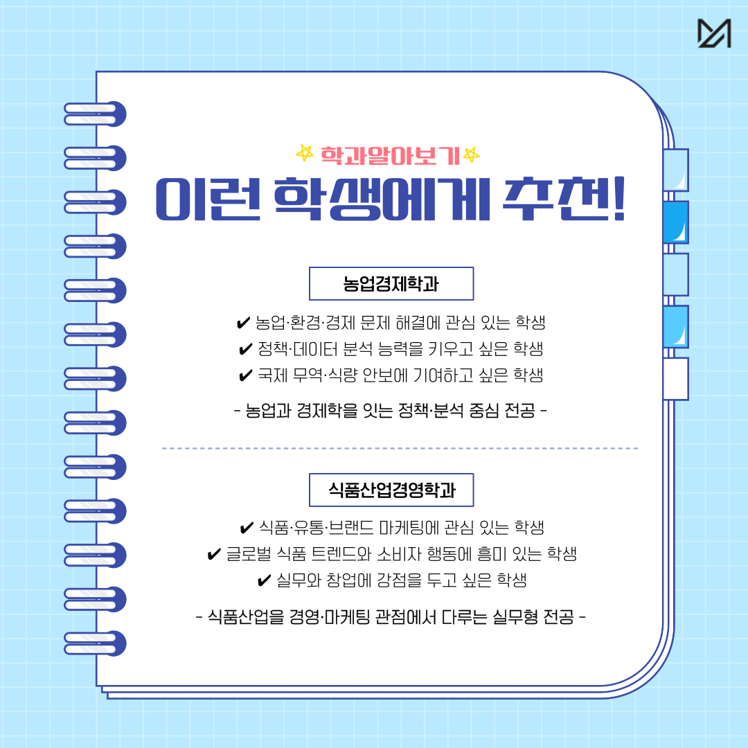 [학과알아보기] 농업경제학과 & 식품산업경영학과 | 2025.10.02 |