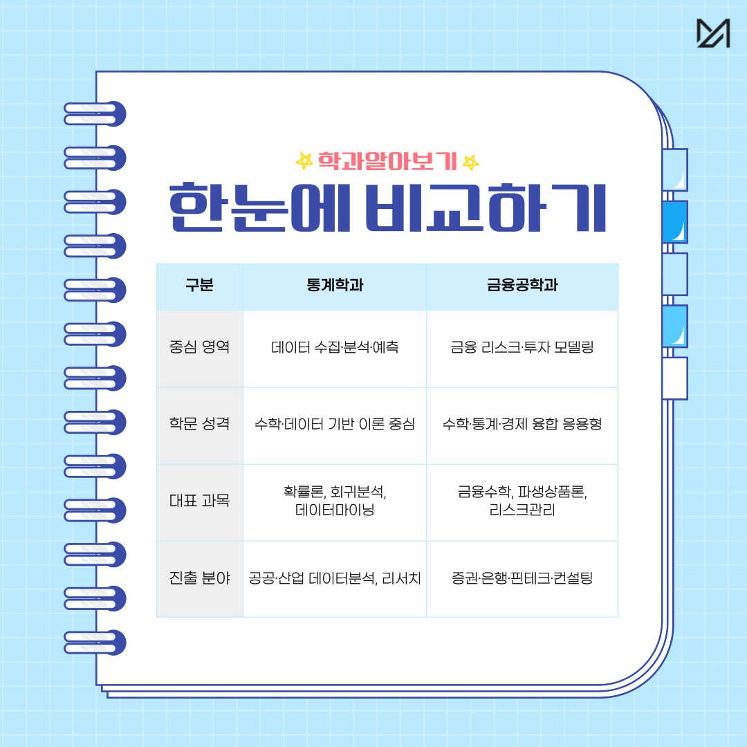 | [인기학과 알아보기] 통계학과 vs 금융공학과 | 2025.10.24 |