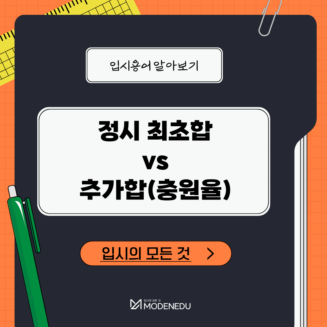 | [입시용어 알아보기] 정시 최초합 vs 추가합(충원율) 개념 및 대학별 차이 | 2025.12.23 |