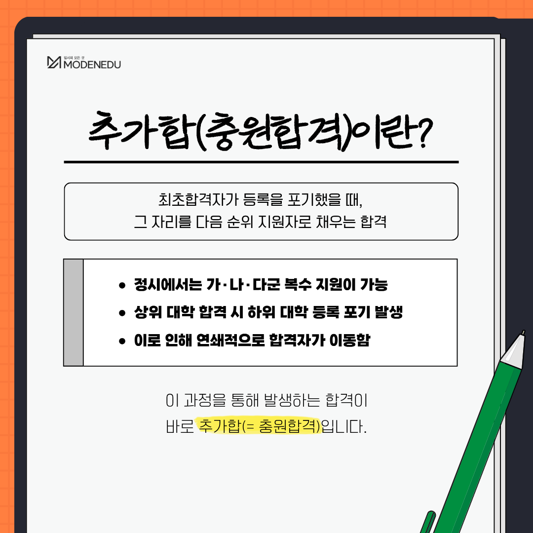 - 추가합: 등록 포기로 인해 발생하는 합격