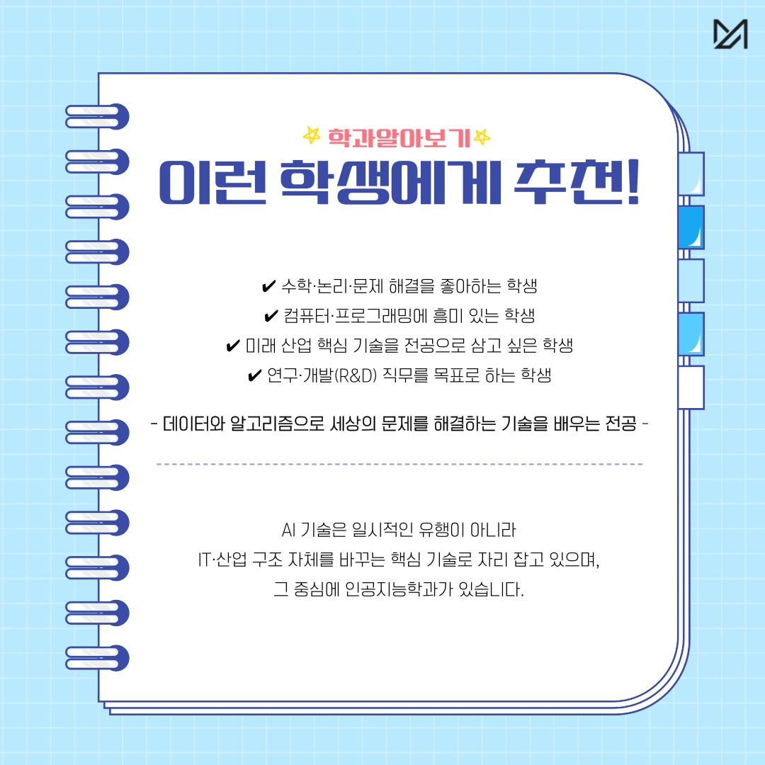 “데이터와 알고리즘으로 세상의 문제를 해결하는 기술을 배우는 전공”입니다.