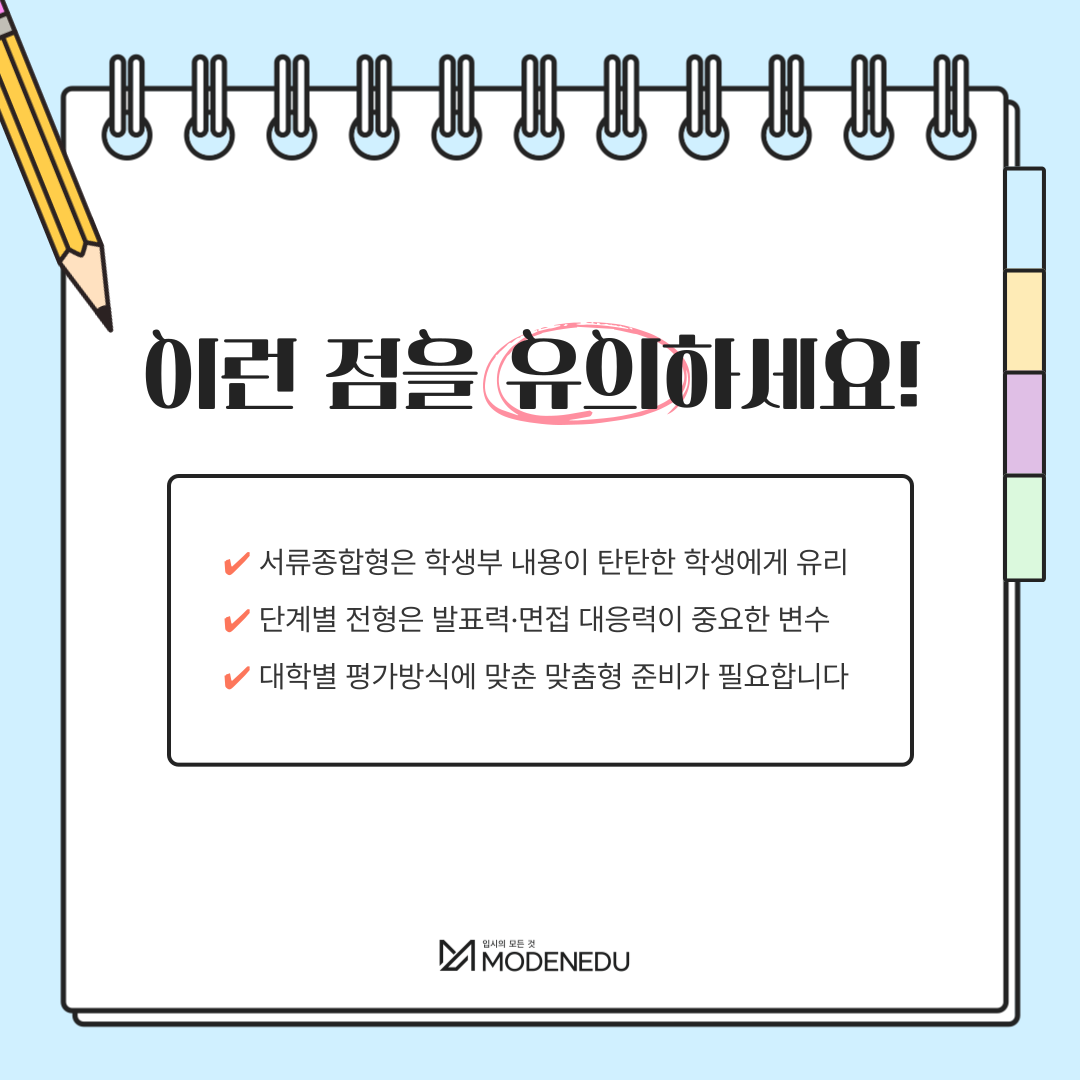 대학별 평가방식에 맞춘 맞춤형 준비가 필요합니다