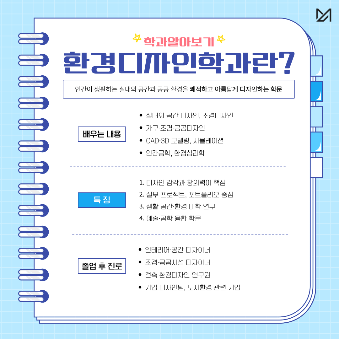 📌 환경디자인학과는 “사람이 머무는 공간을 더 쾌적하고 아름답게 만드는 학문”