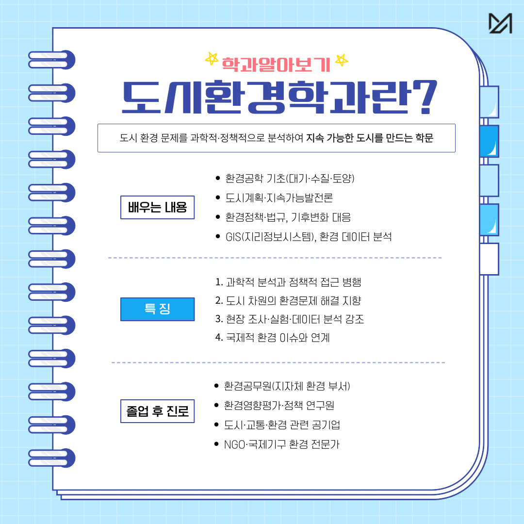 📌 도시환경학과는 “지속 가능한 도시를 만들기 위해 환경과 정책을 연구하는 학문”