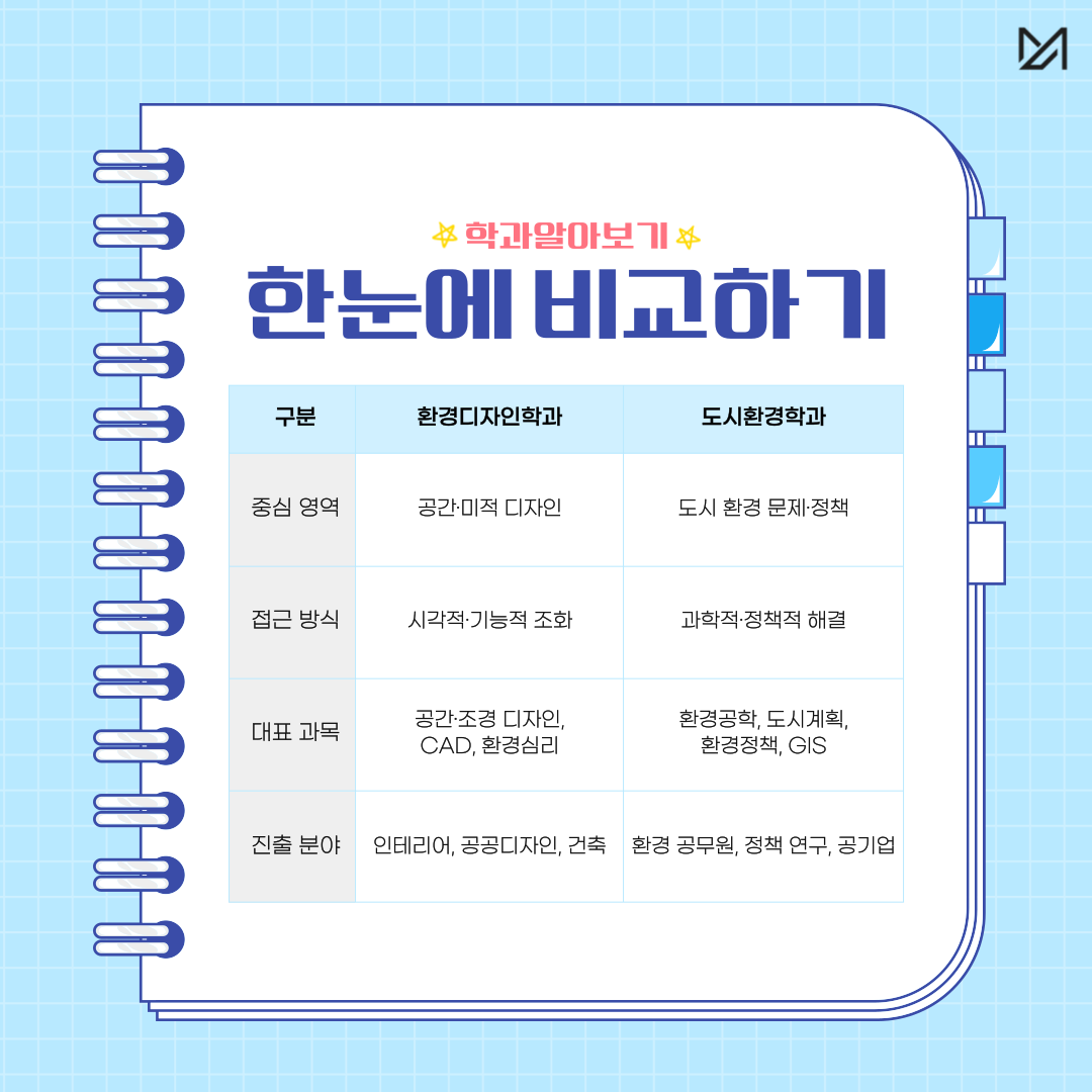 | 진출 분야 | 인테리어, 공공디자인, 건축 | 환경 공무원, 정책 연구, 공기업 |