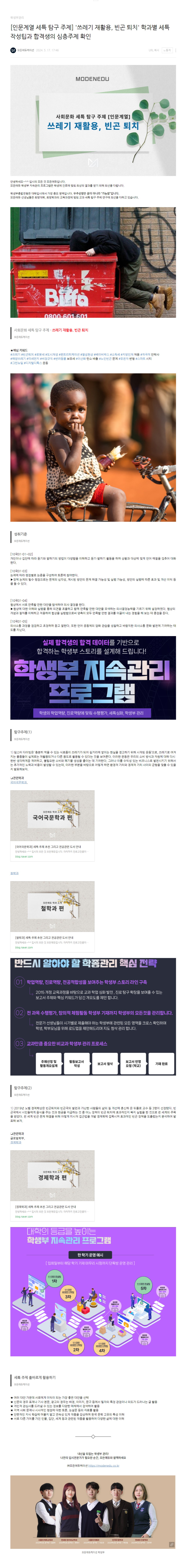 [인문계열 세특 탐구 주제] '쓰레기 재활용, 빈곤 퇴치' 학과별 세특 작성팁과 합격생의 심층주제 확인