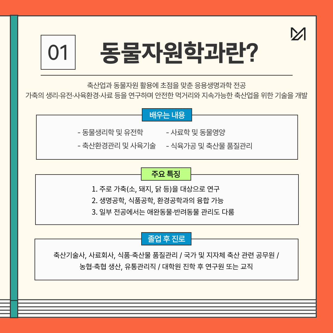 - 동물 사육·유전·영양 등 생명과학 기반 연구에 흥미 있는 학생