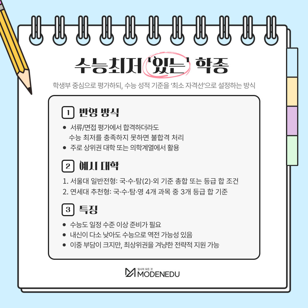 [입시용어 알아보기] 수능최저 있는 학종 & 수능최저 없는 학종 | 2025.07.15 |