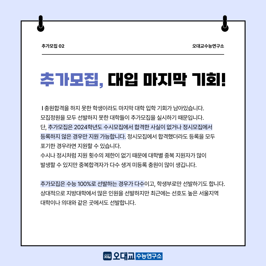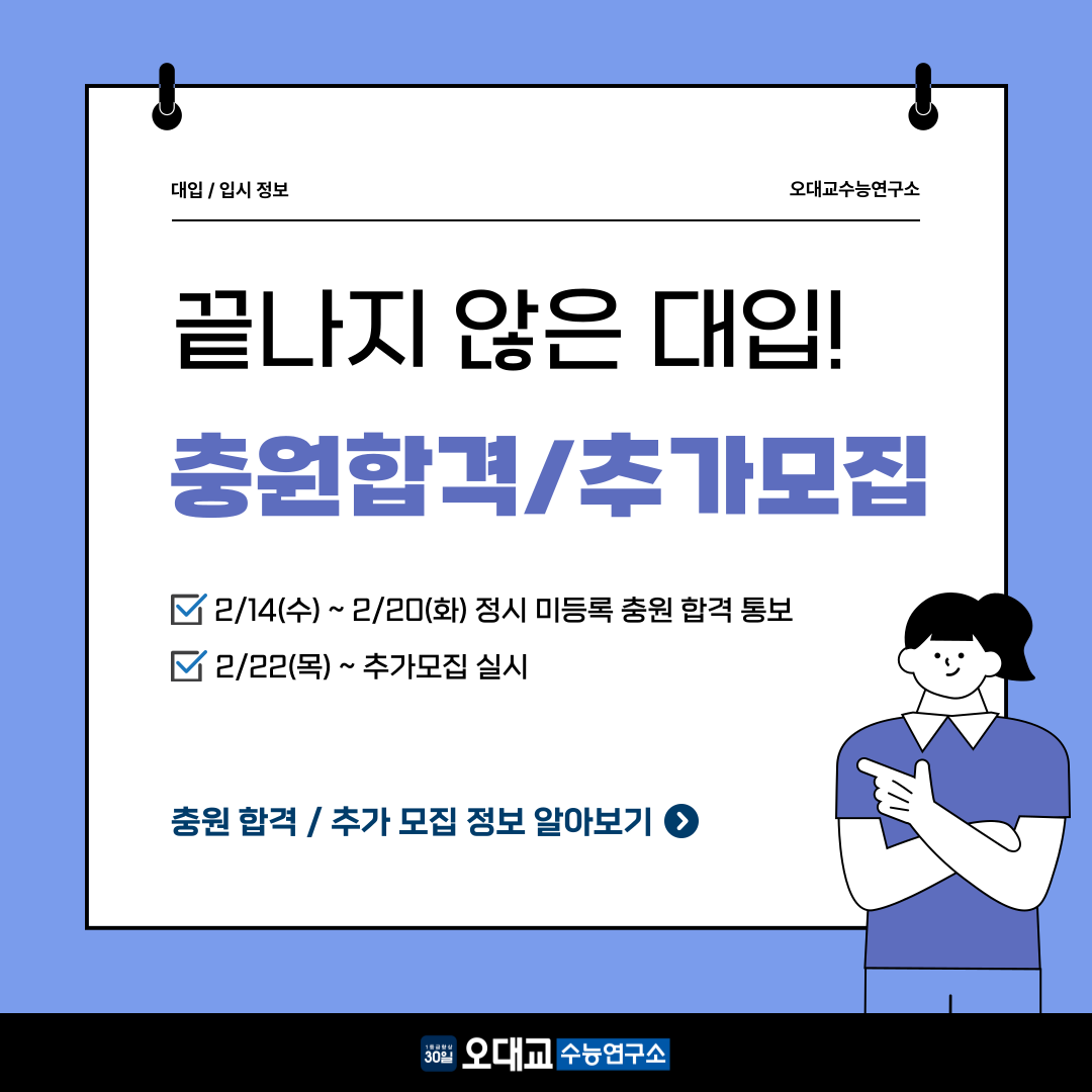 [2024정시 대입] 끝나지 않은 대입! 충원합격/추가모집 정보 알아보기.